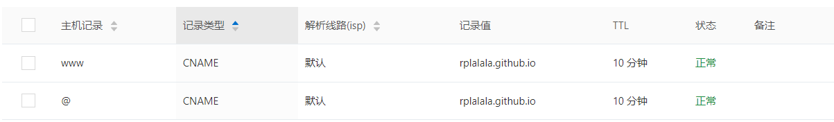 - 将域名 www.dingzh.cc 指向 rplalala.github.io